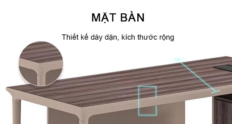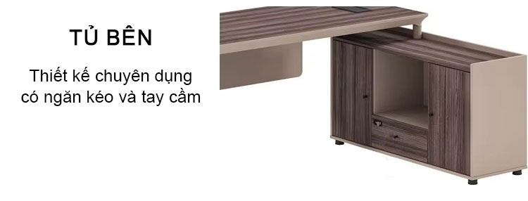 - Bàn SD-32T1616 được trang bị một tủ bên tiện dụng, giúp người sử dụng dễ dàng lưu trữ tài liệu, hồ sơ, vật dụng văn phòng một cách gọn gàng và khoa học. Tủ bên được thiết kế với các ngăn kéo và ngăn mở, tạo không gian lưu trữ thuận tiện, giúp tổ chức đồ đạc ngăn nắp, dễ dàng tìm kiếm khi cần thiết. Các ngăn kéo có khóa giúp đảm bảo an toàn cho các tài liệu hoặc vật dụng có giá trị.
