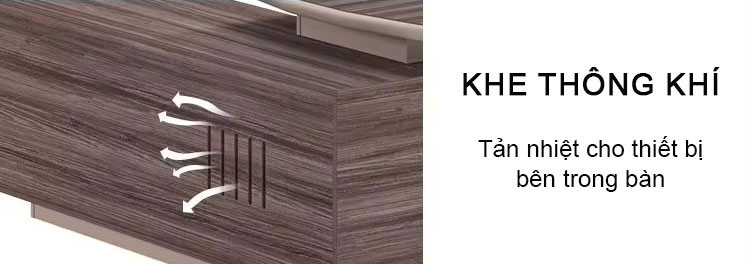 - Một điểm nổi bật của Bàn SD-34T2416 là thiết kế khe thông khí nằm dưới mặt bàn. Khe thông khí giúp lưu thông không khí, giảm thiểu nhiệt độ khi sử dụng các thiết bị điện tử như máy tính, điện thoại, từ đó bảo vệ các thiết bị này khỏi hư hỏng do quá nhiệt. Đồng thời, khe thông khí cũng tạo sự thoải mái cho người sử dụng khi làm việc trong thời gian dài.