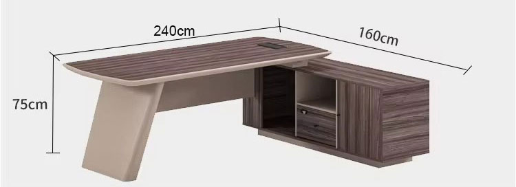 - Sở hữu thiết kế kiểu dáng chữ L, mang đến sự rộng rãi và thoải mái cho người sử dụng. Với kích thước 240cm (chiều dài) x 160cm (chiều rộng) x 75cm (chiều cao), bàn cung cấp đủ không gian để bạn có thể thoải mái làm việc, sắp xếp tài liệu, thiết bị và máy tính mà không cảm thấy chật chội. Kiểu dáng chữ L còn giúp tận dụng tối đa diện tích, đồng thời mang lại sự phân chia hợp lý giữa các khu vực làm việc. Bàn này dễ dàng kết hợp với các đồ nội thất khác như tủ hồ sơ hay ghế lãnh đạo, tạo nên một không gian làm việc hài hòa và chuyên nghiệp.
