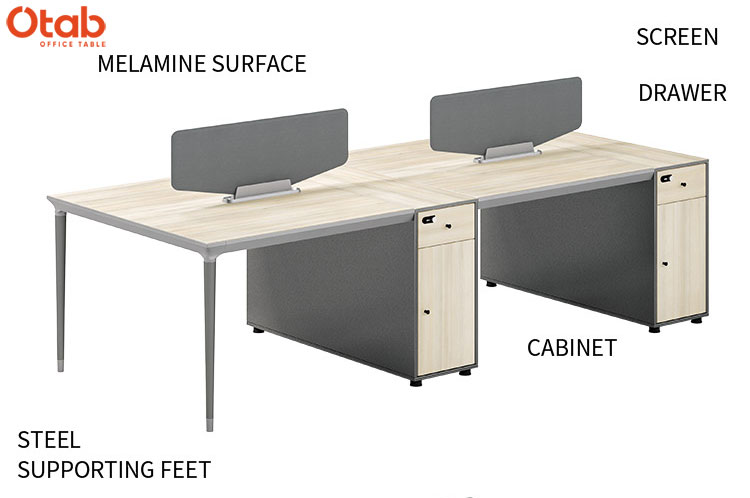 Mặt bàn hình chữ nhật ghép đôi có vách ngăn chính giữa, tạo nên không gian làm việc riêng biệt mà còn giữ được nét riêng tư, lịch sự nơi công sở.