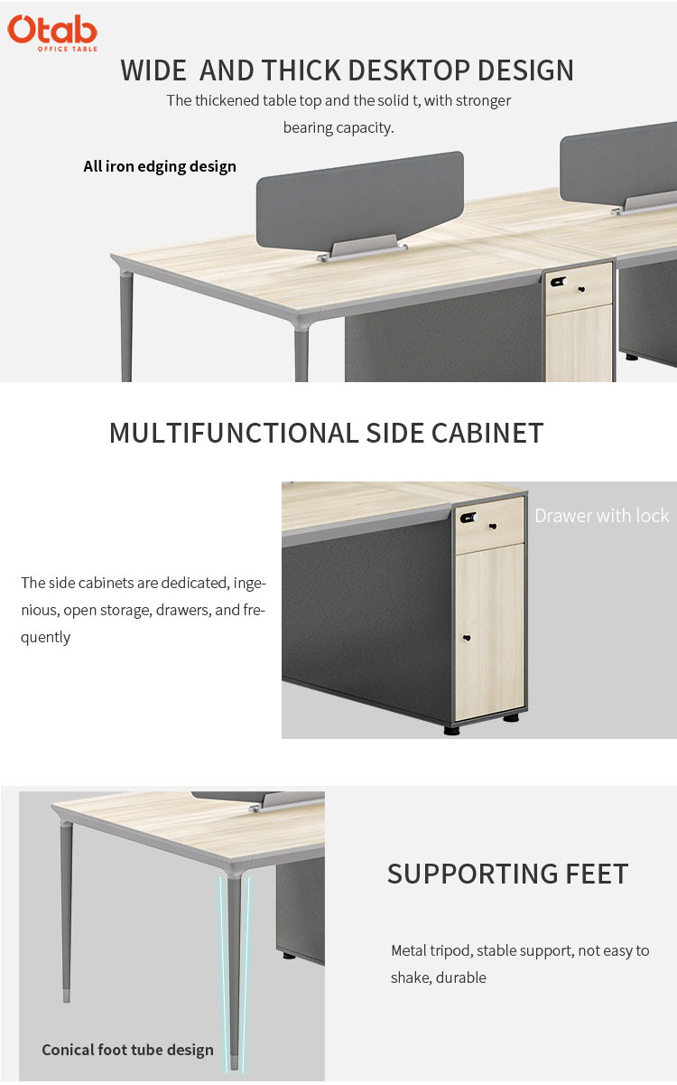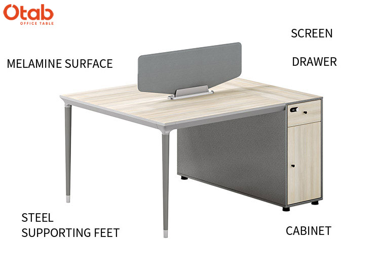 Mặt bàn hình chữ nhật ghép đôi có vách ngăn chính giữa, tạo nên không gian làm việc riêng biệt mà còn giữ được nét riêng tư, lịch sự nơi công sở.