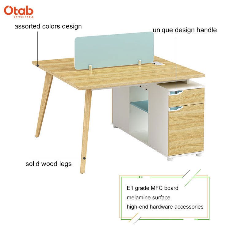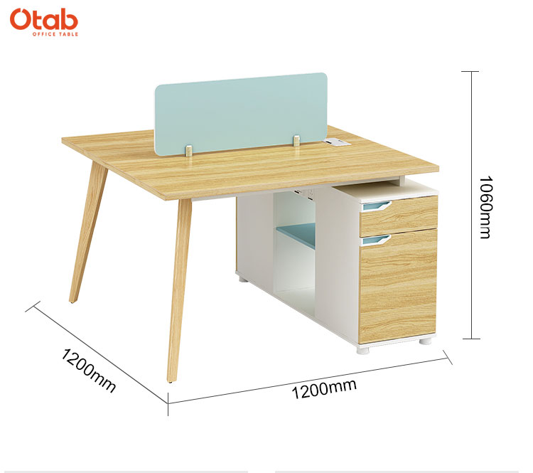 Mặt bàn hình chữ nhật ghép đôi có vách ngăn chính giữa, tạo nên không gian làm việc riêng biệt mà còn giữ được nét riêng tư, lịch sự nơi công sở.