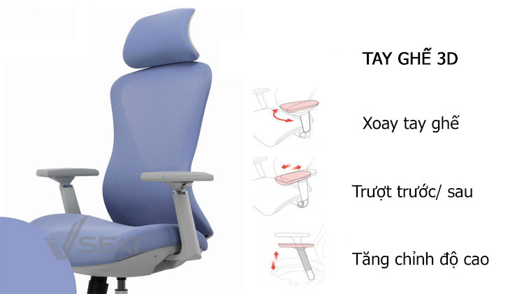 | Armrest (Tay ghế) | Tựa tay 3D tạo sự tì đỡ thoải mái, giảm sự căng cơ của bắp tay, cổ vai hiệu quả |
