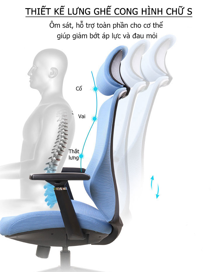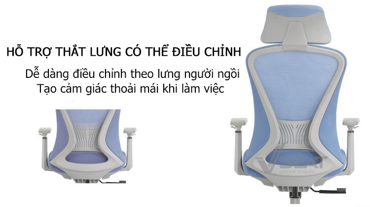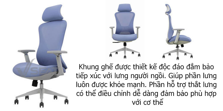 | Back (Lưng ghế) | Khung nhựa màu xám cao cấp bọc lưới, có hỗ trợ điều chỉnh thắt lưng |