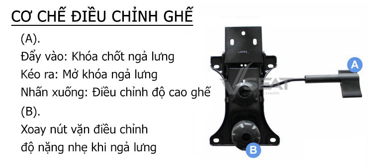 | Mechanism (Bộ điều khiển) | Hệ thống điều khiển mâm 1 cần hiện đại tích hợp nâng hạ và khóa cố định khi ngồi thẳng. |