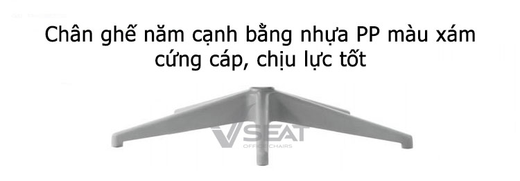 | Base (Chân ghế) | Chân ghế Nylon xám chịu trọng tải tốt và giữ thăng bằng ổn định khi ngồi. |