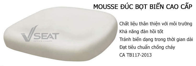 | Seat (Đệm ngồi) | Đệm mouse đúc bọc vải Nano cao cấp |