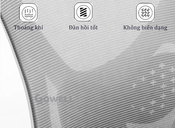 | Armrest (Tay ghế) | Tựa tay bằng nhựa PP, bề mặt bằng chất liệu vải hoặc PU êm ái. Chống căng mỏi cơ vai – tay. |