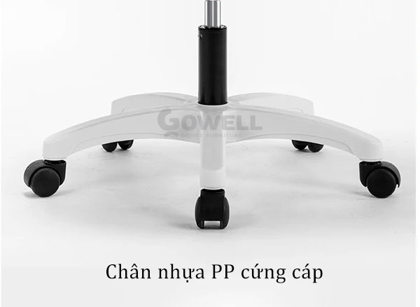 + Chân ghế nhựa PP cao cấp xoay 5 cạnh hình sao vững chắc với khả năng chịu lực tốt và giữ thăng bằng ổn định. Bánh xe PU loại tốt có đặc tính di chuyển linh hoạt, xoay 360 độ và không phát ra tiếng ồn lớn.