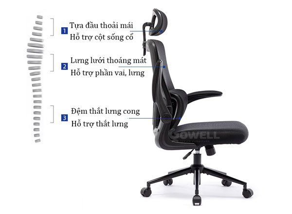 Hiện nay xu hướng chọn Ghế Công Thái Học Lưới Xoay Văn Phòng Rido 03 – Khung Trắng, Lưới Xám, Nệm Xám nhập khẩu nguyên chiếc mang thương hiệu Gowell đang ngày càng phổ biến không chỉ với nét tinh tế – sang trọng, chất lượng đảm bảo và thân thiện với môi trường mà còn do tính năng ưu việt nổi trội so với các dòng phổ thông hiện tại.