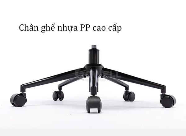 + Chân ghế nhựa PP cao cấp xoay 5 cạnh hình sao vững chắc với khả năng chịu lực tốt và giữ thăng bằng ổn định. Bánh xe PU loại tốt có đặc tính di chuyển linh hoạt, xoay 360 độ và không phát ra tiếng ồn lớn.