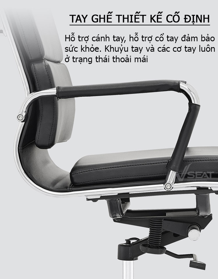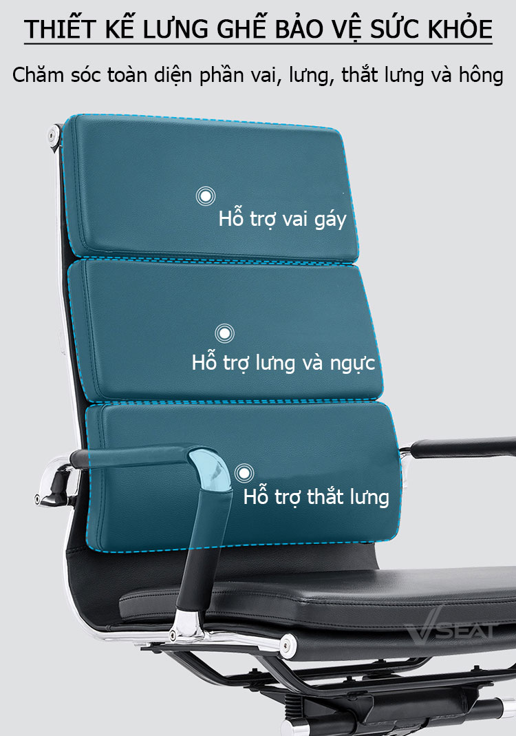 Ghế da văn phòng VSEAT CK – 095A – Dòng ghế lãnh đạo cao cấp được thiết kế đạt tiêu chuẩn công nghệ Châu Âu, hỗ trợ bảo vệ sức khỏe và chống mắc các bệnh văn phòng. Sản phẩm nổi bật với tính thẩm mỹ cao, mang đến sự khác biệt, đẳng cấp cho không gian văn phòng làm việc.