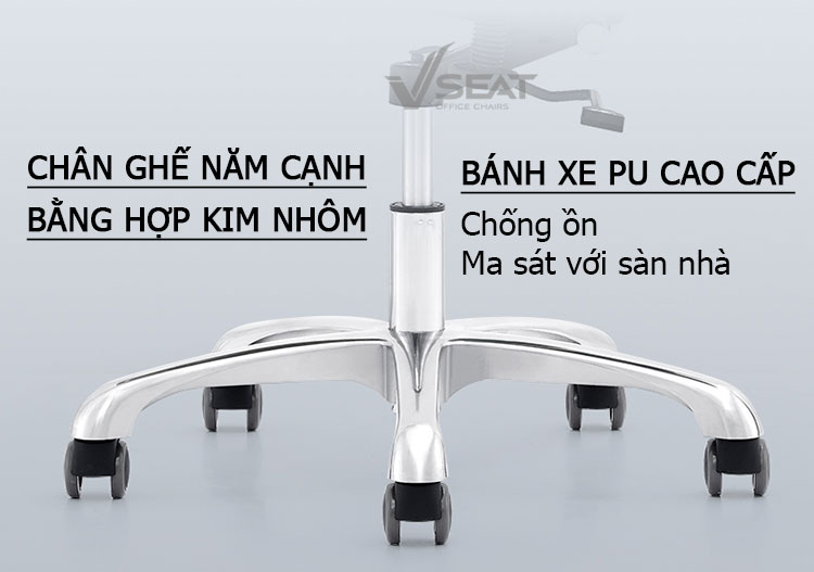 | Base (Chân ghế) | Chân kim loại dày chống chịu lực tốt, giúp giữ thăng bằng mang đến cảm giác an toàn khi ngồi. |