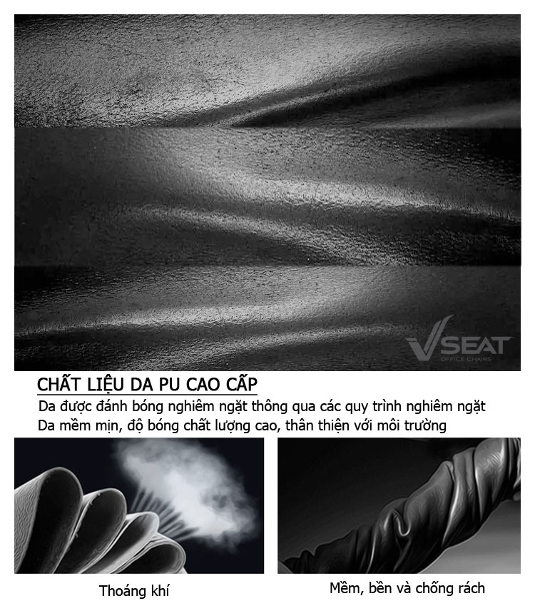 | Seat (Đệm ngồi) | Đệm mút đúc định hình mật độ cao bọc da PU cao cấp có khả năng đàn hồi tốt mang đến sự thoải mái nhất cho người sử dụng. |