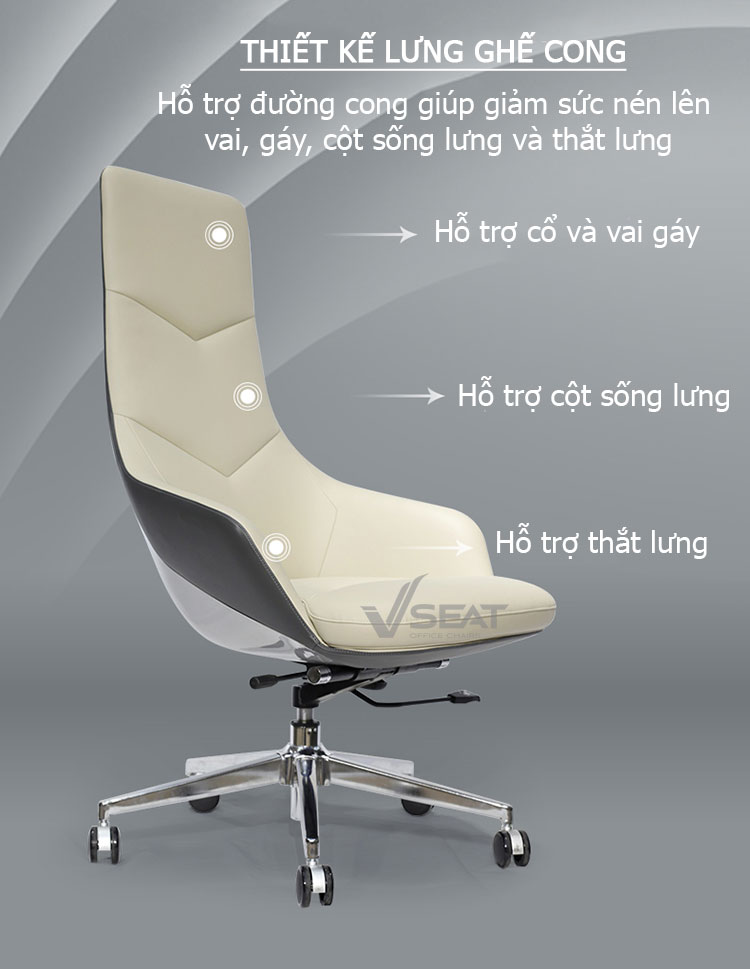 Ghế da văn phòng VSEAT GW – 2103A – Dòng ghế lãnh đạo cao cấp được thiết kế đạt tiêu chuẩn công nghệ Châu Âu, hỗ trợ bảo vệ sức khỏe và chống mắc các bệnh văn phòng. Sản phẩm nổi bật với tính thẩm mỹ cao, mang đến sự khác biệt, đẳng cấp cho không gian văn phòng làm việc.