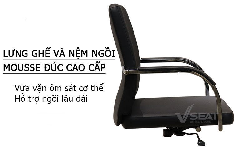 + Nệm ngồi và lưng ghế được sản xuất từ mousse đúc cao cấp với độ đàn hồi cao, thoáng khí, không biến dạng, mềm mại. Tạo cảm giác thoải mái khi ngồi làm việc lâu và bảo vệ sức khỏe tuyệt đối