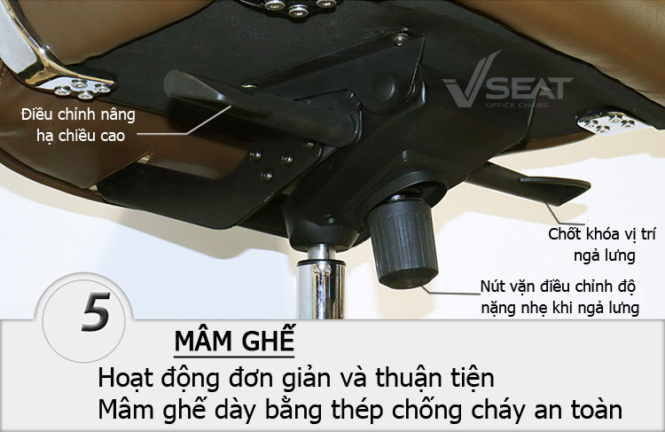 + Thuận tiện với các chức năng điều chỉnh ghế đơn giản với mâm ghế được chế tác từ thép dày, cứng cáp, an toàn, chống cháy nổ giúp loại bỏ những nguy hiểm tiềm ẩn