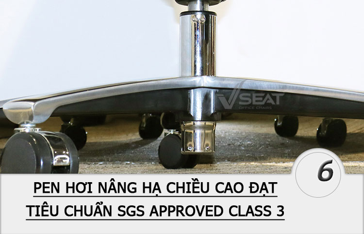 + Pel hơi nâng hạ độ cao ghế dễ dàng đạt tiêu chuẩn quốc tế SGS APPROVED CLASS 3