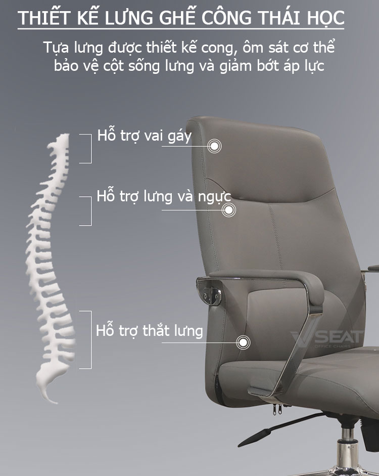 Ghế da văn phòng VSEAT YS – 1601B – Dòng ghế lãnh đạo cao cấp được thiết kế đạt tiêu chuẩn công nghệ Châu Âu, hỗ trợ bảo vệ sức khỏe và chống mắc các bệnh văn phòng. Sản phẩm nổi bật với tính thẩm mỹ cao, mang đến sự khác biệt, đẳng cấp cho không gian văn phòng làm việc.