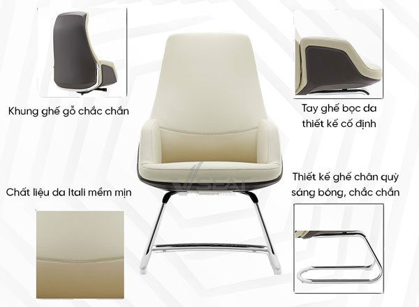 | Base (Chân ghế) | Chân kim loại dày chống chịu lực tốt, giúp giữ thăng bằng mang đến cảm giác an toàn khi ngồi. |