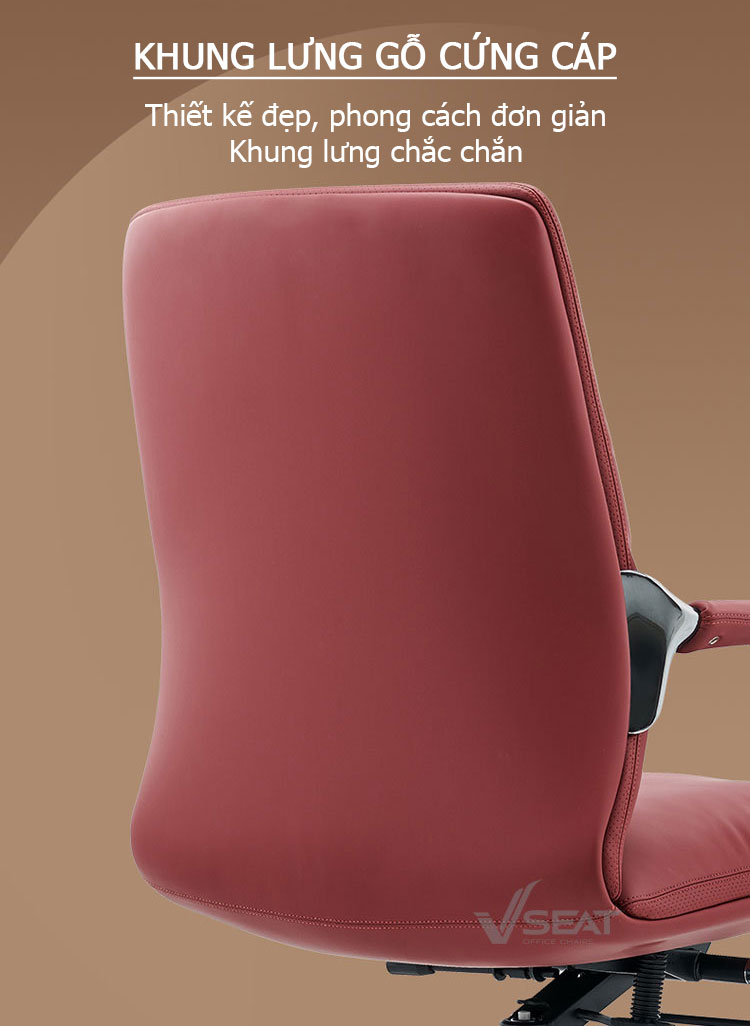 | Back (Lưng ghế) | Khung lưng bằng gỗ ván ép dày chắc chắn. Lưng đệm bằng mút định hình mật độ cao, bọc da PU cao cấp. |