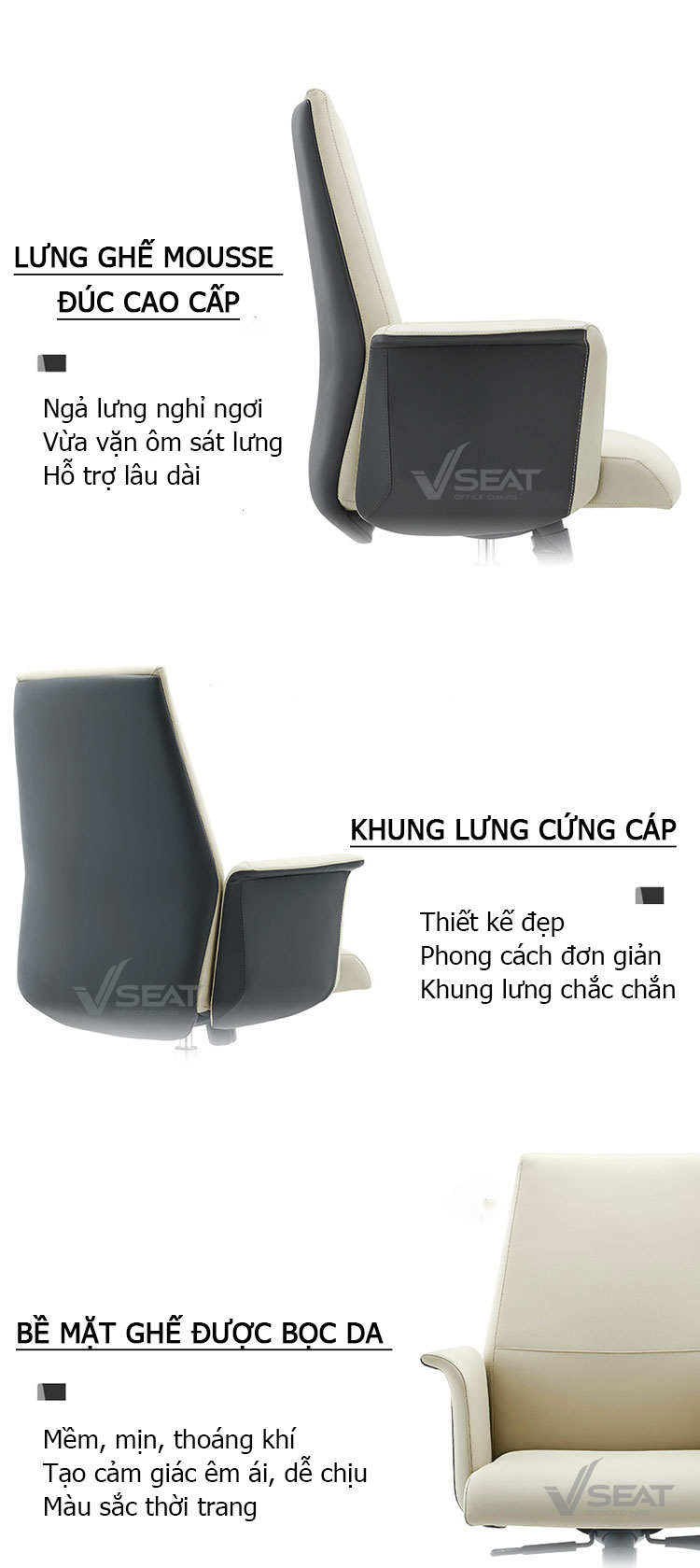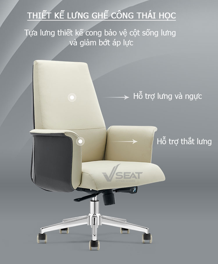 Ghế da văn phòng VSEAT YS – 201B – Dòng ghế lãnh đạo cao cấp được thiết kế đạt tiêu chuẩn công nghệ Châu Âu, hỗ trợ bảo vệ sức khỏe và chống mắc các bệnh văn phòng. Sản phẩm nổi bật với tính thẩm mỹ cao, mang đến sự khác biệt, đẳng cấp cho không gian văn phòng làm việc.