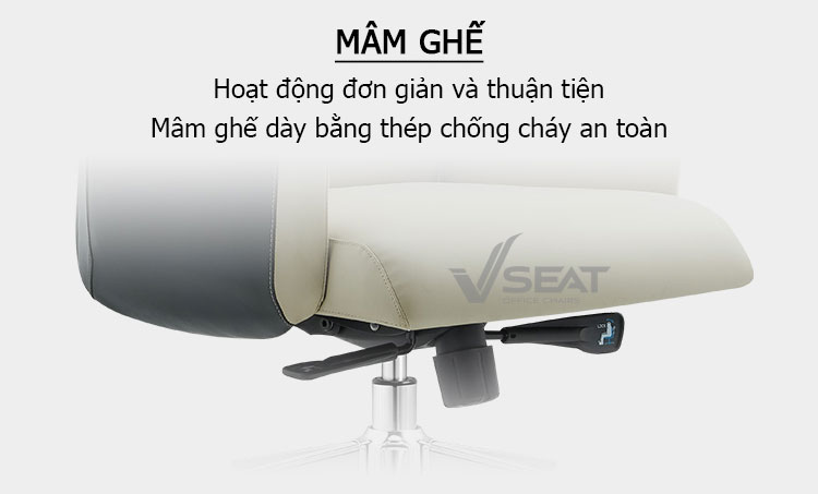 | Base (Chân ghế) | Chân kim loại dày chống chịu lực tốt, giúp giữ thăng bằng mang đến cảm giác an toàn khi ngồi. |