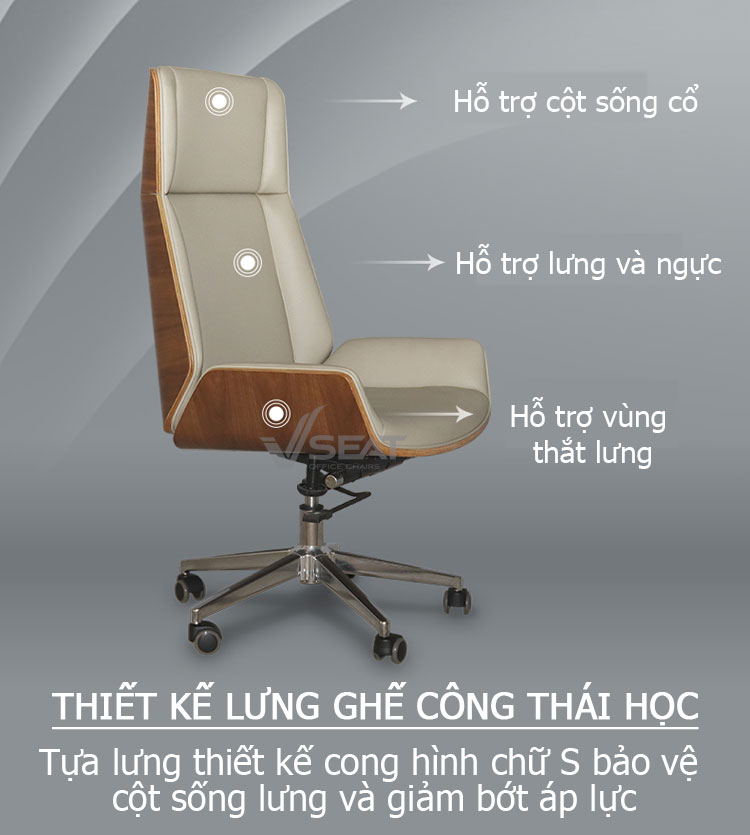 Ghế da văn phòng Vseat YS – 207A– Dòng ghế lãnh đạo cao cấp được thiết kế đạt tiêu chuẩn công nghệ Châu Âu, hỗ trợ bảo vệ sức khỏe và chống mắc các bệnh văn phòng. Sản phẩm nổi bật với tính thẩm mỹ cao, mang đến sự khác biệt, đẳng cấp cho không gian văn phòng làm việc.