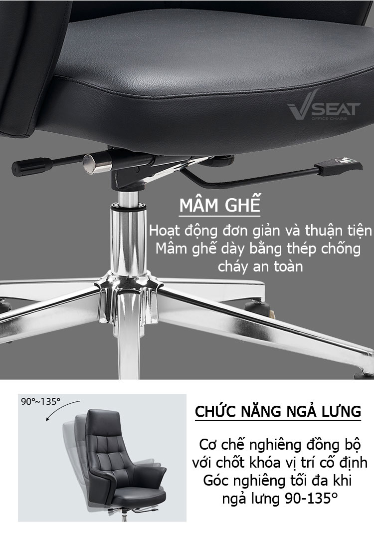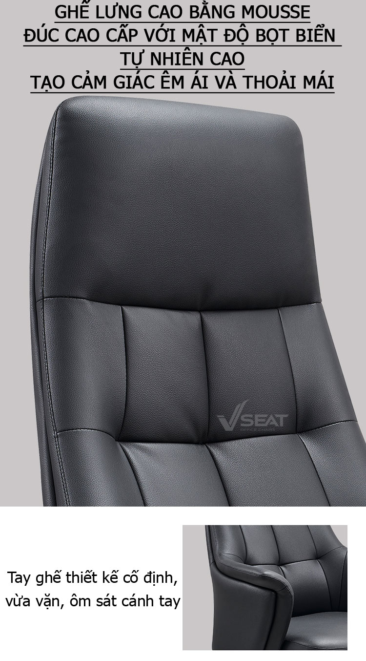 Ghế da văn phòng Vseat YS – 2107A – Dòng ghế lãnh đạo cao cấp được thiết kế đạt tiêu chuẩn công nghệ Châu Âu, hỗ trợ bảo vệ sức khỏe và chống mắc các bệnh văn phòng. Sản phẩm nổi bật với tính thẩm mỹ cao, mang đến sự khác biệt, đẳng cấp cho không gian văn phòng làm việc.