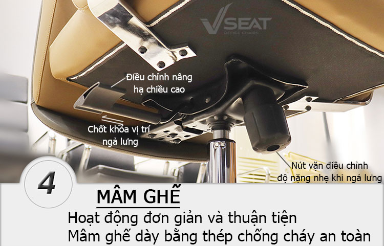 + Thuận tiện với các chức năng điều chỉnh ghế đơn giản với mâm ghế được chế tác từ thép dày, cứng cáp, an toàn, chống cháy nổ giúp loại bỏ những nguy hiểm tiềm ẩn