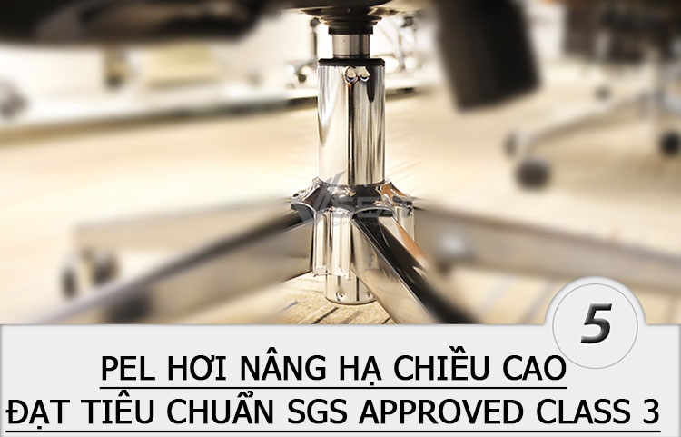 + Pel hơi nâng hạ độ cao ghế dễ dàng đạt tiêu chuẩn quốc tế SGS APPROVED CLASS 3