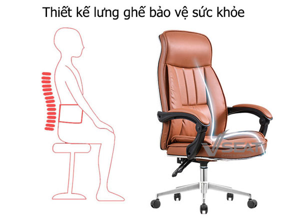 + Lưng ghế cao, kiểu dáng chuẩn form khoa học với sự hỗ trợ của các khối đệm phân khối nhỏ nhô cao, giúp nâng đỡ toàn diện phần cột sống lưng và giảm sự chèn ép lên các khớp xương khi ngồi lâu.