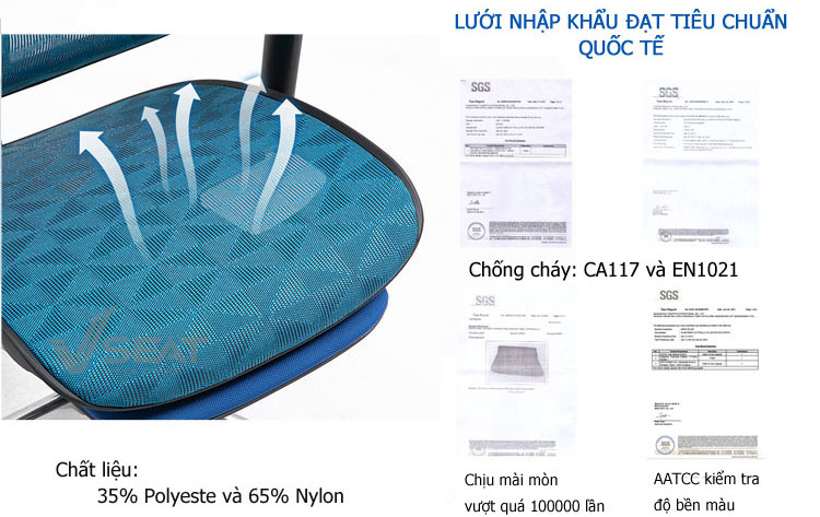 | Gas lift (Pen hơi) | Piston điều chỉnh độ cao thấp, đạt tiêu chuẩn BIFMA. |