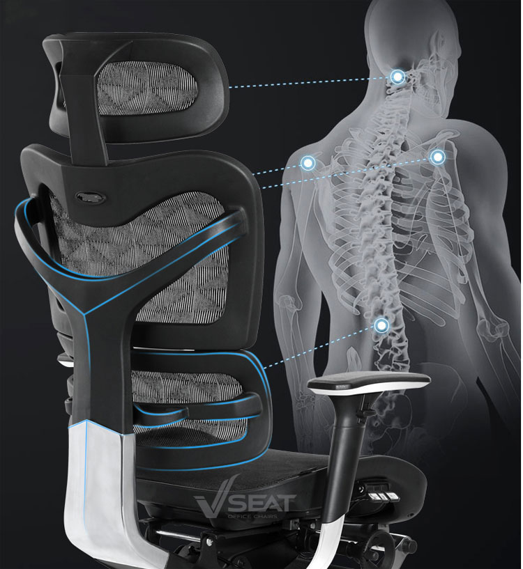 | Back (Lưng ghế) | Lưng ghế được thiết kế công thái học – hỗ trợ sức khỏe người ngồi. Điều chỉnh độ cao lưng ghế dễ dàng, phù hợp, ôm sát, nâng đỡ phần lưng người ngồi. Pát nối giữa đệm ngồi + lưng ghế bằng nhôm cao cấp. |
