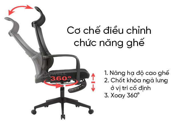 | Mechanism (Bộ điều khiển) | Hệ thống điều khiển mâm 2 cần hiện đại, tăng chỉnh độ cao ghế và chốt khóa ngả lưng tùy mục đích sử dụng. |