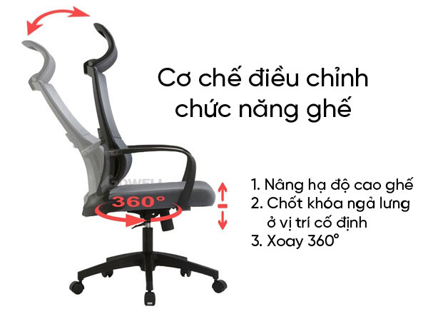 | Mechanism (Bộ điều khiển) | Hệ thống điều khiển mâm 2 cần hiện đại, tăng chỉnh độ cao ghế và chốt khóa ngả lưng tùy mục đích sử dụng. |