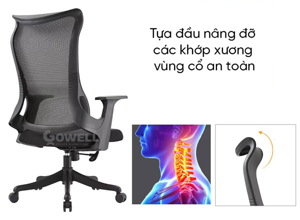 + Gối tựa đầu kết cấu liền khung tựa rất chắc, giúp nâng đỡ các khớp xương vùng cổ an toàn, hạn chế mỏi cổ và cho cảm giác ngồi dễ chịu nhất.