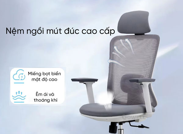 Ghế lưới xoay văn phòng 2342A – Grey thuộc dòng ghế nhân viên cao cấp mang thương hiệu Gowell, một trong những dòng sản phẩm đạt tiêu chuẩn chất lượng BIFMA tại Việt Nam.