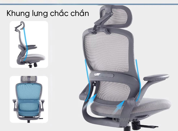 + Gối tựa đầu kết cấu liền khung tựa rất chắc, giúp nâng đỡ các khớp xương vùng cổ an toàn, hạn chế mỏi cổ và cho cảm giác ngồi dễ chịu nhất.