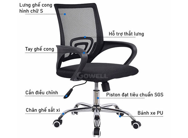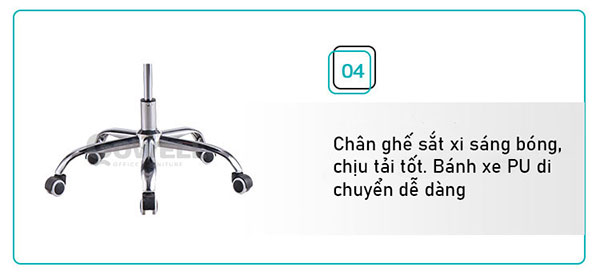 | Base (Chân ghế) | Chân sắt xi giữ cân bằng tạo cảm giác ngồi an toàn |