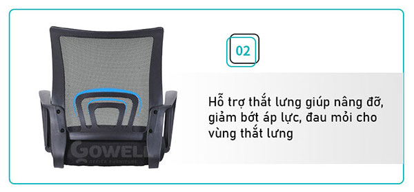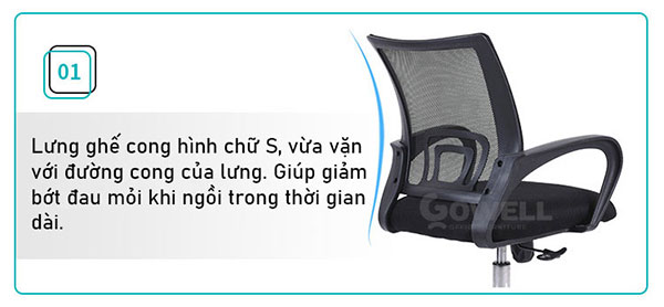 + Thiết kế ghế lưng trung. Lưng ghế cong hình chữ S vừa vặn với đường cong của lưng.