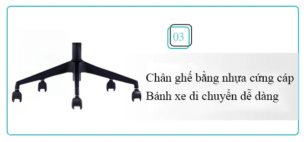 | Base (Chân ghế) | Chân sắt xi giữ cân bằng tạo cảm giác ngồi an toàn |