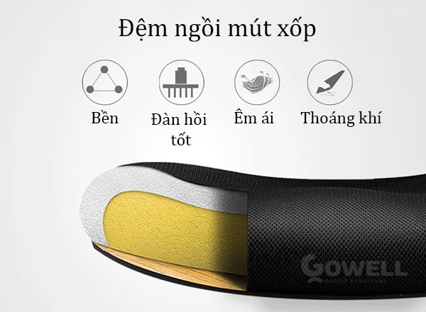 + Đệm ngồi rộng rãi với mút xốp dày bọc vải thoáng khí