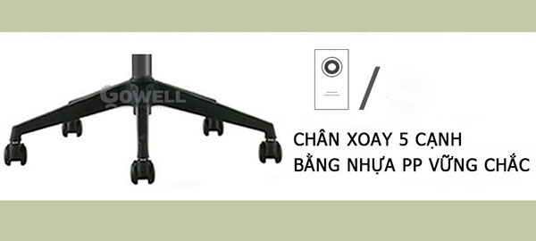 + Chân xoay 5 cạnh hình sao bằng nhựa PP vững chắc với khả năng chống chịu lực tốt và giữ thăng bằng khi xoay 360 độ. Bánh xe PU di chuyển nhanh nhẹn, giảm tiếng ồn và không gây trầy xướt mặt sàn.