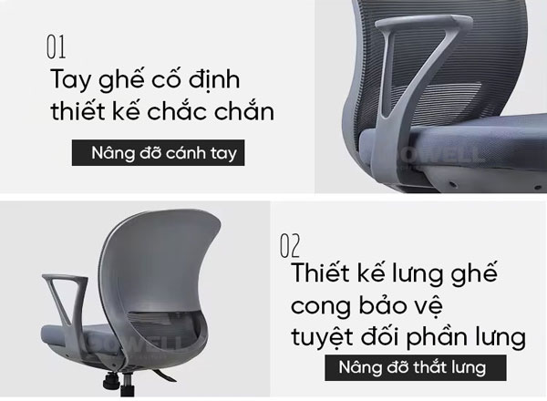 Ghế lưới xoay văn phòng 205B thuộc dòng ghế nhân viên cao cấp mang thương hiệu Gowell, một trong những dòng sản phẩm đạt tiêu chuẩn chất lượng BIFMA tại Việt Nam.