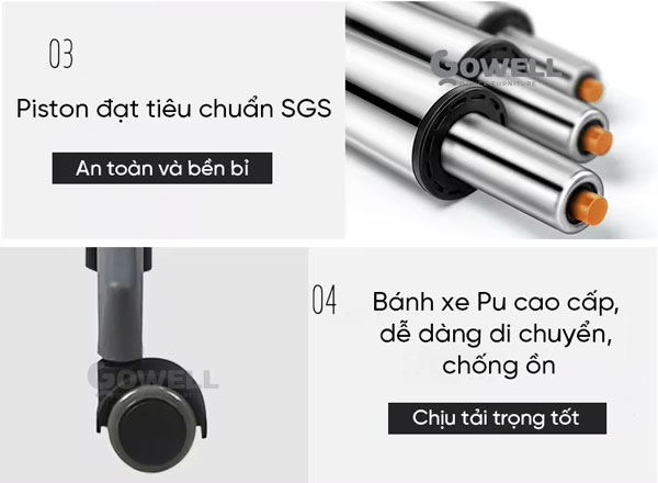 | Gas lift (Pen hơi) | Pel mạ crome – nâng hạ chiều cao |