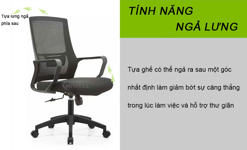 - Ghế lưới xoay văn phòng ISODO B đi kèm với tính năng ngả lưng, giúp bạn thư giãn và giảm căng thẳng cho lưng khi cần. Tựa ghế có thể ngả về sau một góc nhẹ, rất phù hợp để nghỉ ngơi và thư giãn trong lúc làm việc.