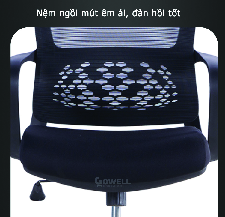- Nệm ghế được trang bị lớp mút mềm, êm ái, mang lại sự thoải mái tối đa trong suốt ngày làm việc. Bạn sẽ không còn cảm giác đau nhức hay mệt mỏi dù ngồi lâu.