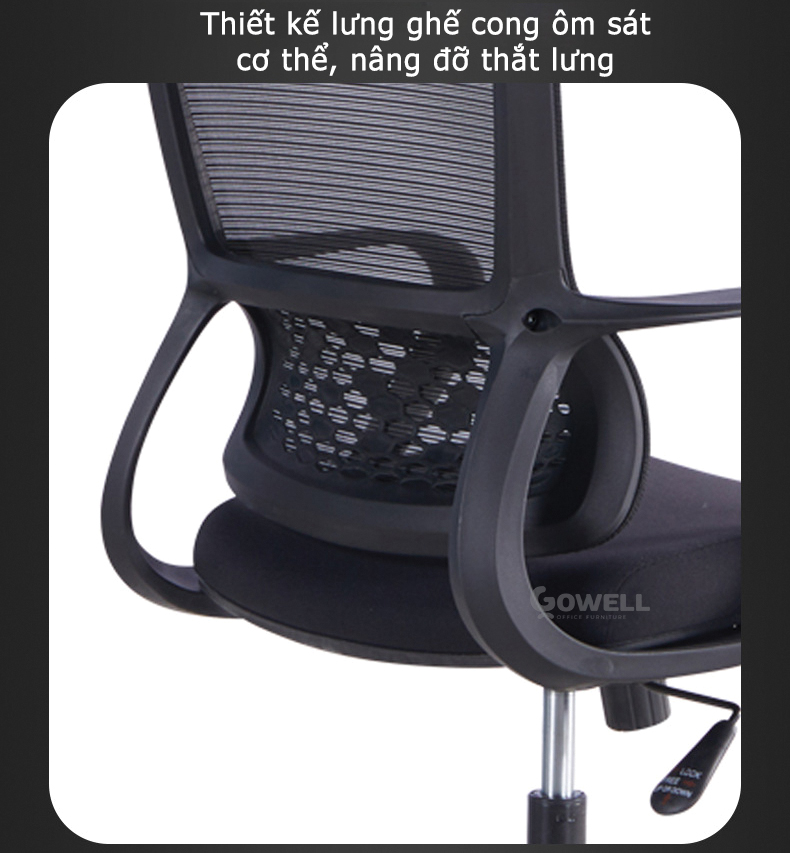 - Lưng ghế bọc lưới thoáng khí. Lưới ghế được làm từ chất liệu cao cấp, giúp thông khí tốt, giảm nhiệt và mồ hôi trong suốt thời gian dài làm việc. Điều này không chỉ giúp bạn cảm thấy dễ chịu mà còn bảo vệ sức khỏe trong những ngày làm việc dài.