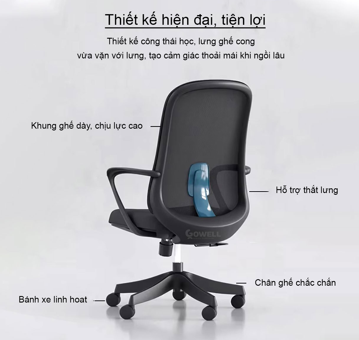 Tổng thể thiết kế của ghế vừa tinh tế, vừa thực dụng, tạo nên vẻ đẹp đồng bộ và chuyên nghiệp cho không gian làm việc của bạn.